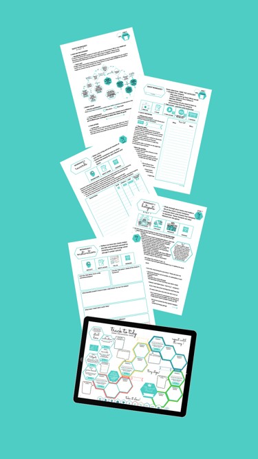 First a word of warning: Once you get the game files, DON'T TAKE A PEEK ON ALL THE WORKSHEETS!! Really, resist your curiosity and just let the game unfold as you move along the game board! Many testers reported almost insurmountable overwhelm when they browsed through all the steps and worksheets at the beginning! Trust the process and consider the upcoming worksheets as surprises to be revealed in their own time.