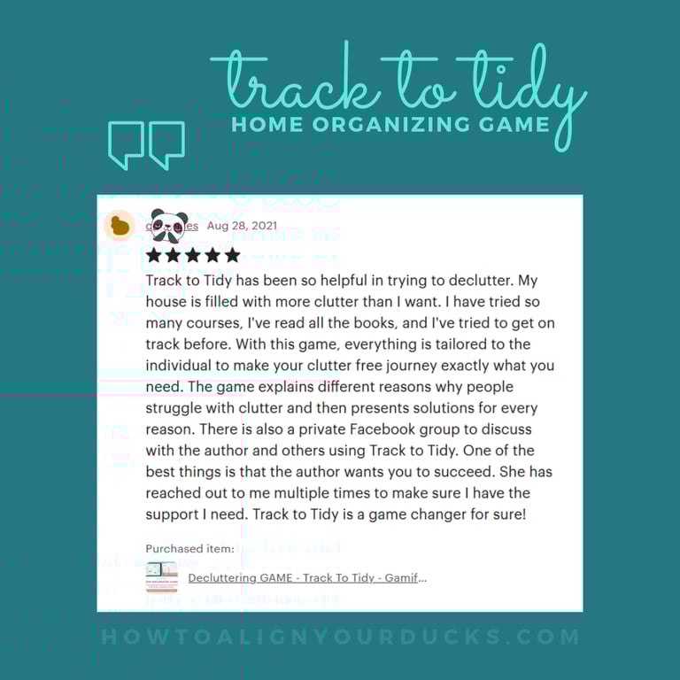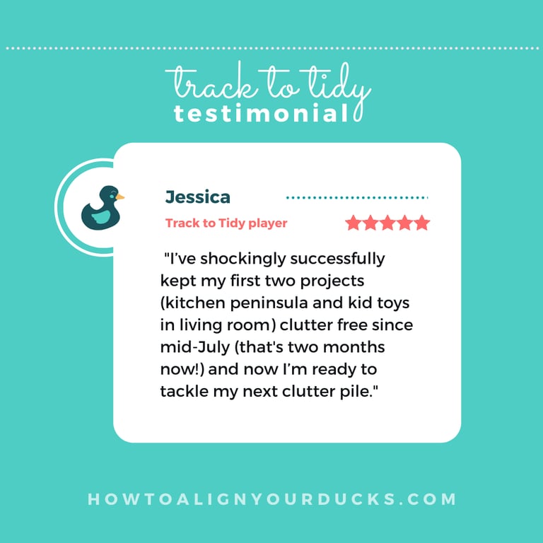 ○ Track to Tidy uses unique psychology-based approaches to break things down and make this doable for you, even if you feel you just don't have it in you!
